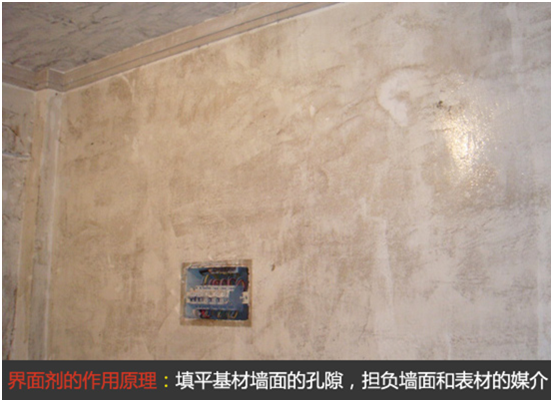 界面劑能填平基材墻面的孔隙,減少墻體的吸收性,保證覆面砂漿材料在更佳條件下黏結(jié)膠凝。同時界面劑擔(dān)負(fù)著墻面和表面材料粘合的媒介,保證整體結(jié)合成一個永久黏合的整體。